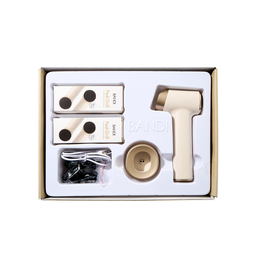 The Bandi Eco-sis Pedi Drill offers a gentle yet effective home care solution to easily restore dry, cracked heels. Designed with interchangeable heads, it effortlessly targets hard-to-reach areas like between the toes, making your foot care routine both thorough and comfortable.